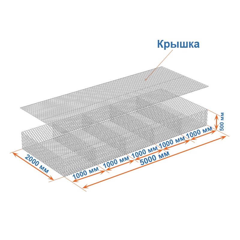 Габион матрац  ГСИ-К 5х2х0,5 оцинкованный, Ø проволоки 3,0 мм, размер ячейки 8х10 см фото