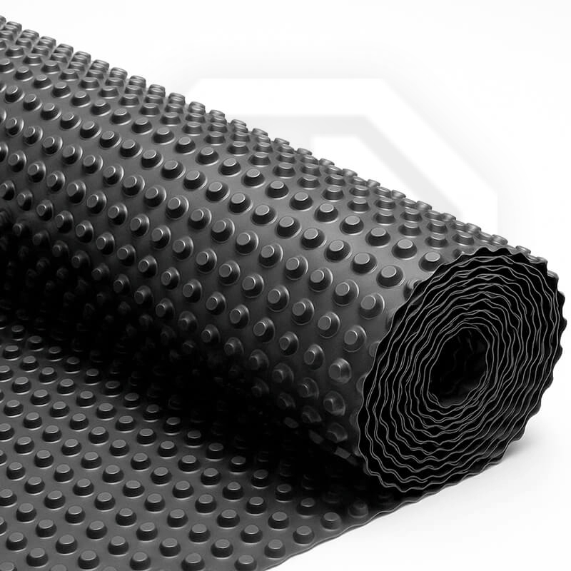 Профилированная мембрана Тефонд Дрейн – полотно, изготовленное из полиэтилена высокой плотности. Текстура мембраны – выпуклые полусферы, образующие воздушную прослойку между поверхностью и защитным слоем.